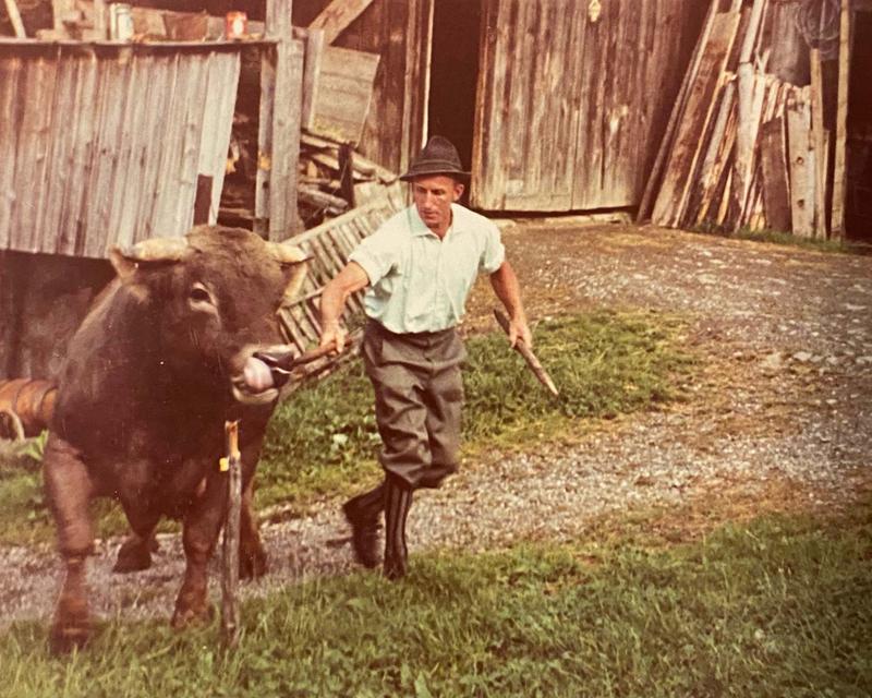Anton, leidenschaftlicher Landwirt, lebte für seine Tiere. Sein Vieh war sein ganzer Stolz, sein Alltag sein erfülltes Tun. Wenn er nicht im Stall oder auf den Wiesen war, zog es ihn in den Wald – sein Holz, sein Hof, seine Hände. Und wenn der Winter kam, stand er oben in Grasgehren, als Liftler im Skigebiet. Immer draußen, immer nah an Natur und Arbeit. Nie laut, aber voller Kraft.