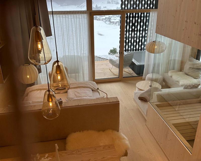 Wellness, wie das Leben selbst – echt und frei. Alle vier Ferienhäuser verfügen über einen privaten Spa-Bereich, der zum Leben einlädt. Die Sauna schenkt wohltuende Wärme und gleichzeitig einen freien Blick auf die Berge – perfekt nach einem Tag voller Erlebnisse.