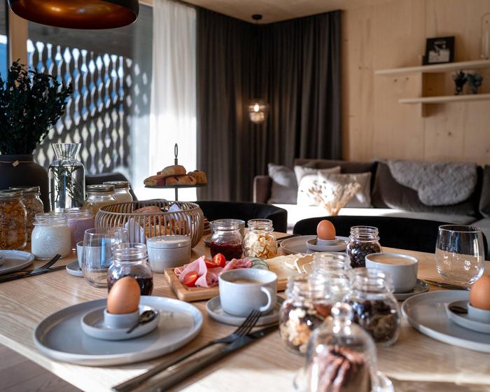 Und dann ist da noch all das, was man nicht buchen kann: Holz, Leben und ehrliche Materialien, die man sieht, riecht und spürt. Kleine Überraschungen. Liebevolle Details. Und jeden Morgen ein gefüllter Frühstückskorb – wie früher bei Cilli: mit kleinem Zopf, Käse, Eiern vom Hof ums Eck und hausgemachten Kleinigkeiten.